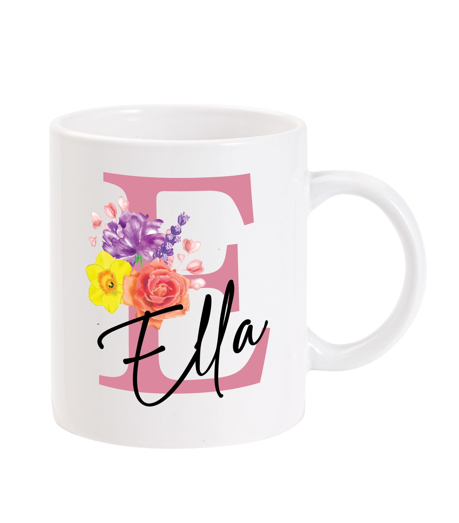 Ella Mug with beautiful flower print. Size: 11 oz.