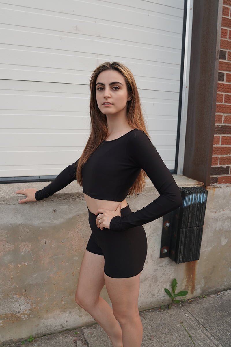 This flattering cut highlights a second skin fit. The Long Sleeve Crop is an ultra versatile wardrobe staple.
